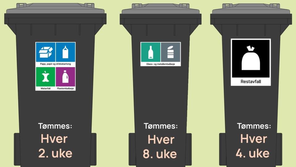 1. desember skal alle tre dunker tas i bruk Følg med i appen eller i tømmekalenderen på nett for å se når dine dunker skal tømmes. Publisert 14.11.2025 kl. 10.44